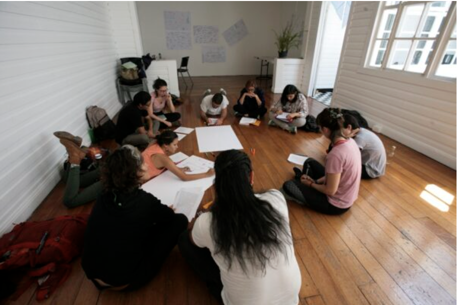 “Agítese antes de usar II” busca compartir y generar una reflexión activa sobre las intersecciones entre la práctica artística, la pedagogía, el activismo y su repercusión en el ámbito público e institucional. Las formas de enseñanza dentro del ámbito escolar y universitario han sido siempre cuestionadas y reinventadas por artistas, desde Joseph Beuys hasta Luis Camnitzer (y otrxs) en la actualidad. En los últimos 15 años, han surgido debates y publicaciones acerca de nuevas dinámicas de aprendizaje desarrolladas de maneras alternativas por estudiantes, artistas y docentes. Las mismas contemplan nuevas metodologías de trabajo y formas de vinculación horizontal, un protagonismo del cuerpo y el desarrollo de la inteligencia emocional al momento de aprender y compartir conocimiento.
