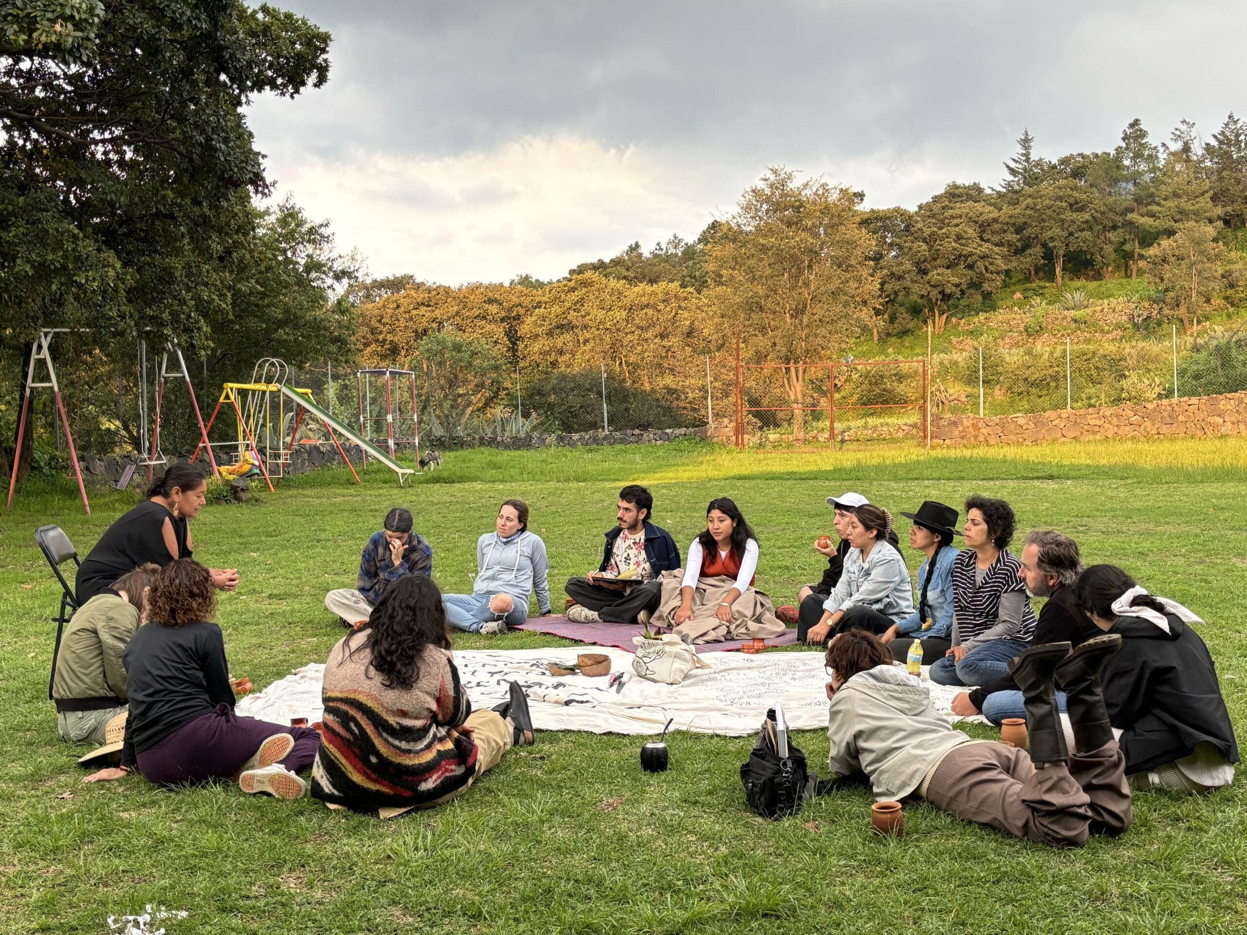 La milpa, la escuela es un programa pedagógico que funge como proyecto económico, político y ritual. Busca reconocer a quienes sostienen la vida, así como re-encantar a quienes nacimos fragmentados. Cambiar el lenguaje de productor/consumidor por lenguajes de colaboración donde todes nos responsabilizamos en reproducir suelo, cosechar agua, sustentos de vida.