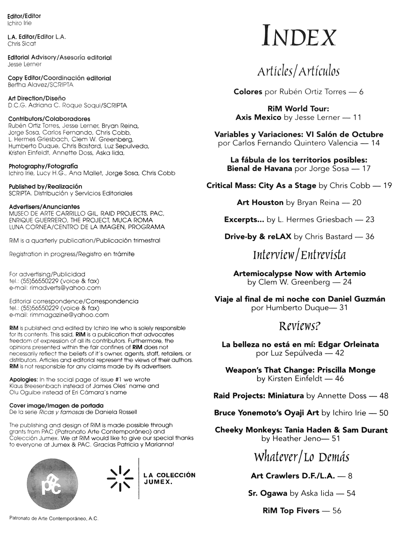 Números 2 y 3 de la revista RIM, enfocada en artistas emergentes y alternativos de la Ciudad de México y Los Ángeles, California. Editada por Ichiro Irie.